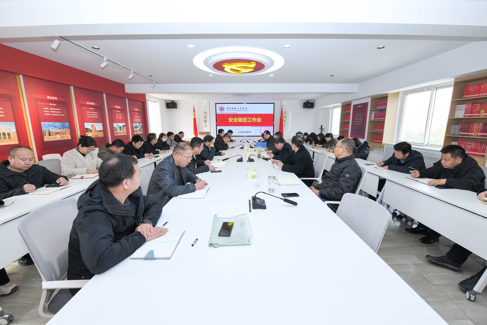 陕服新闻网讯(稳定办)3月4日下午,学校在行政中心召开春季校园安全稳定会议,专题研究部署近期特别是全国“两会”重要保障期校园安全稳定工作。校领导姜寿山、王岗、潘庆才、刘运、罗文谦出席会议。安全稳定工作领导小组一办六组成员、各成员单位负责人,各学院(部)分管安全稳定工作负责人及副书记参加会议,会议由党委副书记、纪委书记刘继兵主持。