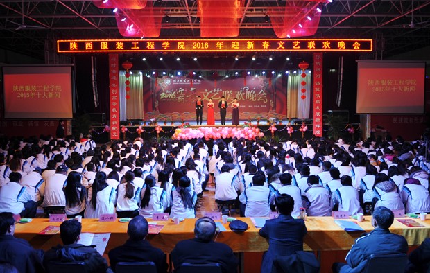 1月5日晚,我校图书馆四楼会议厅灯火辉煌、欢声笑语。我校大型2016迎新春联欢晚会在这里举行。镐京集团董事局主席、陕西服装工程学院董事长吕明、学院院长王鹏飞、党委书记张进平、副院长吕超、温小郑、赵怀礼、副书记刘明夫、院长助理陈登文等出席;执行院长李立向大会宣读了《陕西服装工程学院关于表彰2015年暑期社会实践中参与招生工作优秀学生的决定》。